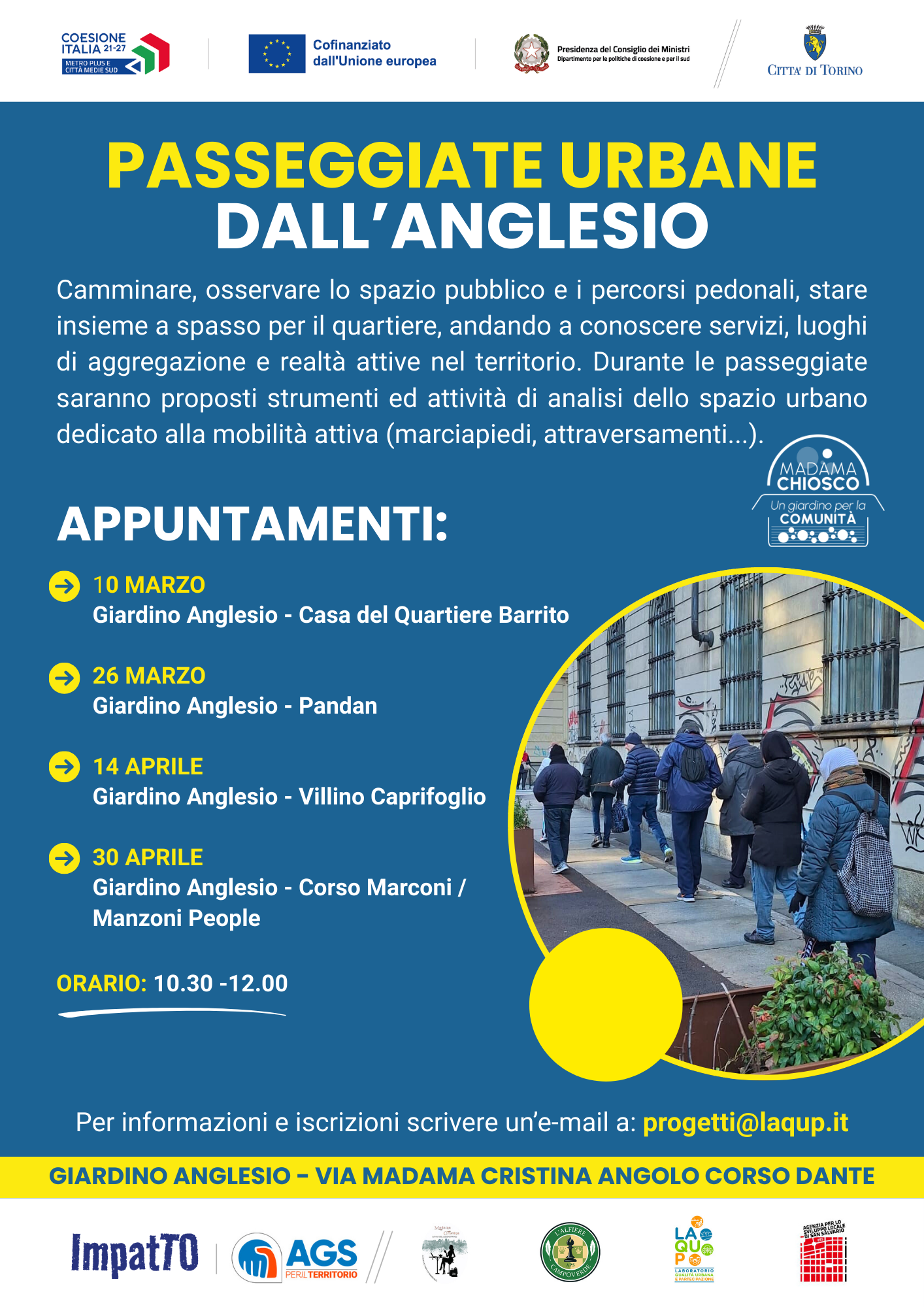 Continuano le iniziative di passeggiate urbane: partendo dal Giardino Anglesio cammineremo insieme verso alcuni dei luoghi dedicati alla comunità presenti nel nostro quartiere per conoscere le persone e le attività svolte.